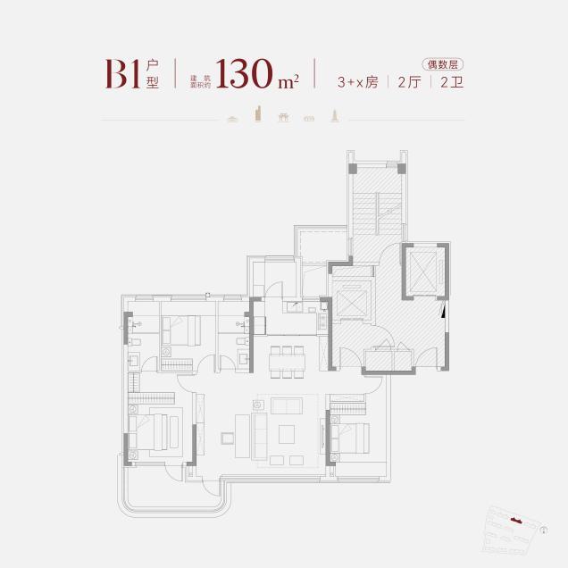 除此之外,即将首次亮相的130㎡3+x房户型,为追求更宽绰尺度的家庭量身定制。作为17层小高层明星产品,以类一梯一户规制打造尊崇归家体验,约94%实际使用率让空间尺度自由舒展。