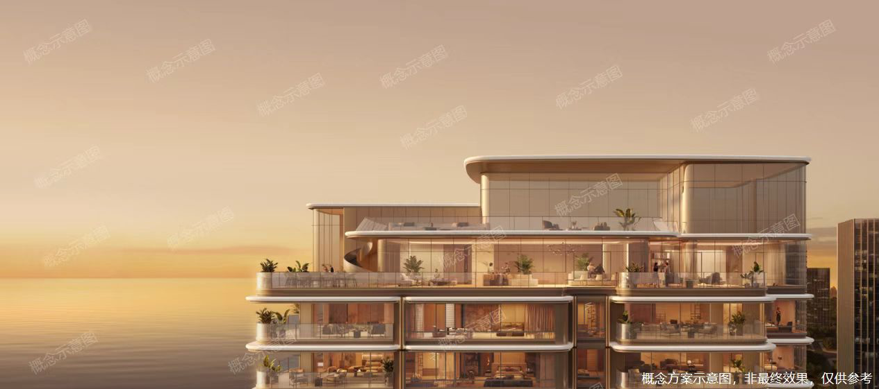其主打产品为建面约143-500㎡的环幕瞰海大宅,通过270°环幕式景观窗、最高约3.3米的层高,以及最大约19米的南向观景阳台,将海景、城际线与园林景观三重视野最大化融于居住空间,显著提升了生活尺度与体验。