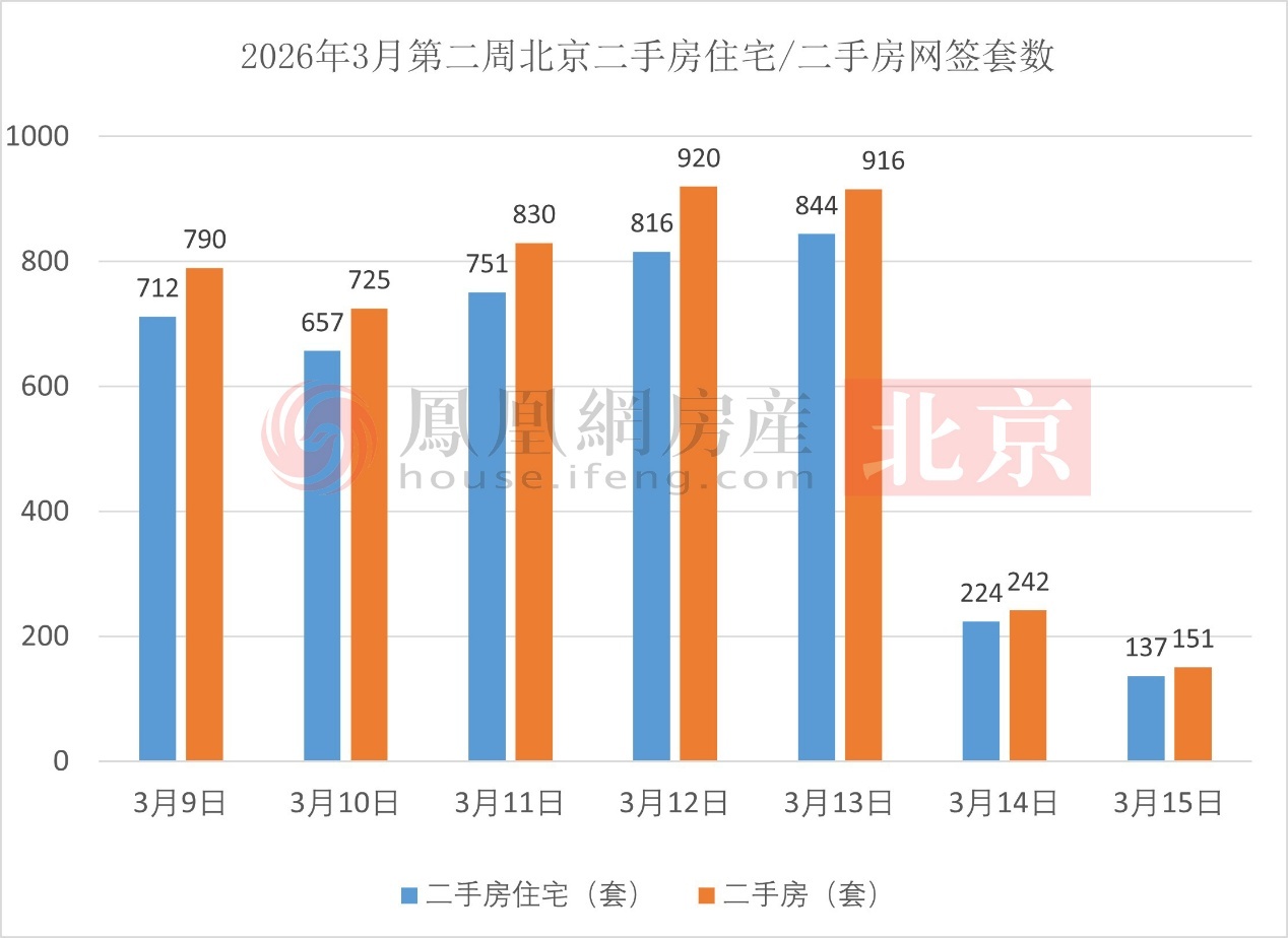 2026年3月第二周北京二手房住宅/二手房网签套数