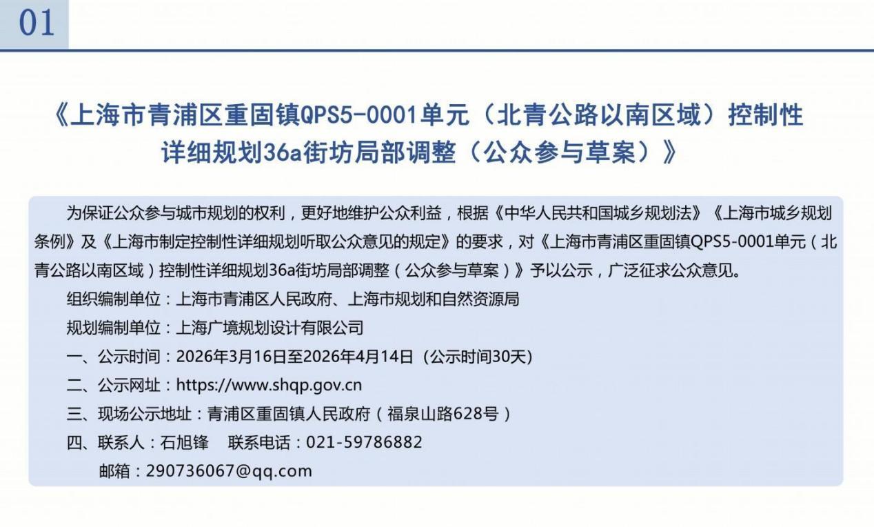 3月16日,青浦区重固镇一则控规局部调整草案引发市场关注。