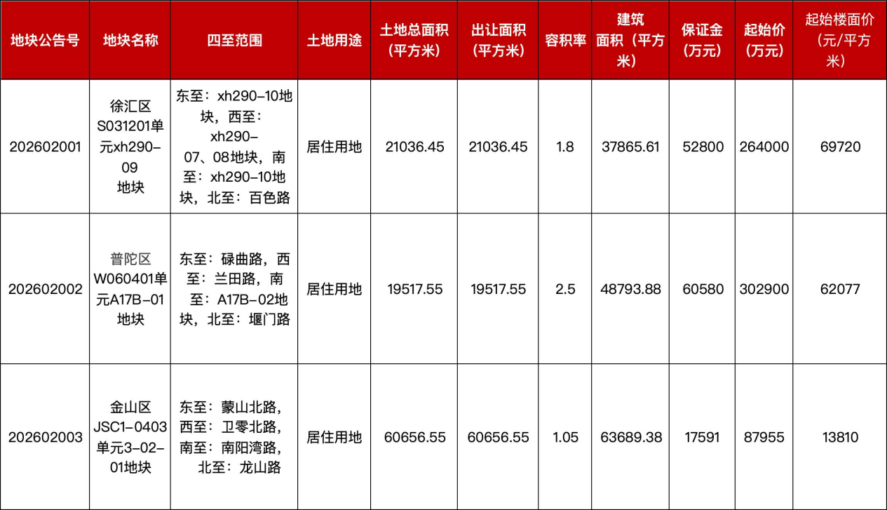 上海第三批次土拍预告发布 徐汇、普陀、金山三宅地待出让