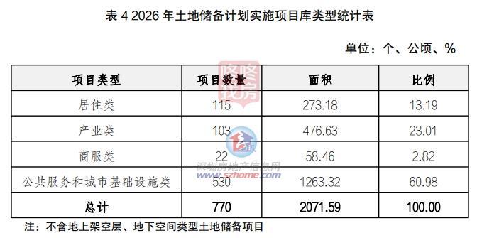2026 年土地储备计划实施项目库共770个,总面积2071.59公顷(不包含地上架空层类型土地储备项目、地下空间类型土地储备项目),其中新增项目268个,面积718.87公顷(34.7%),结转502个,面积1352.72公顷(65.3%)。