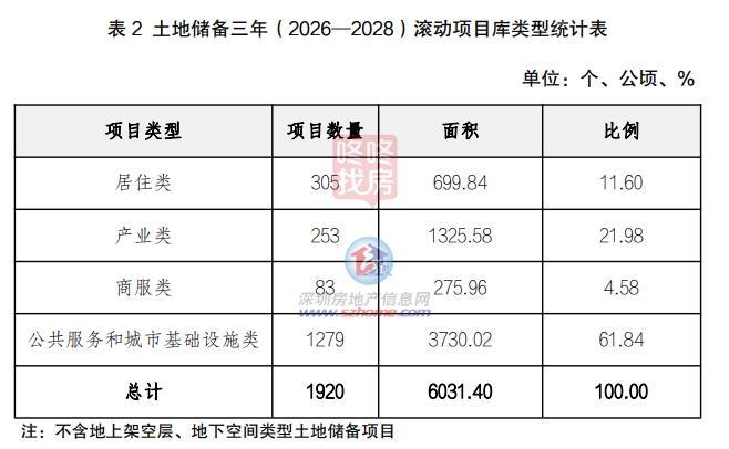 土地储备三年(2026—2028)滚动项目库共1920个项目,总面积为6031.4公顷(不包含地上架空层类型土地储备项目、地下空间类型土地储备项目)。其中,新增项目650个,面积1861.52公顷(30.86%);结转1270个,面积4169.88公顷(69.14%)。