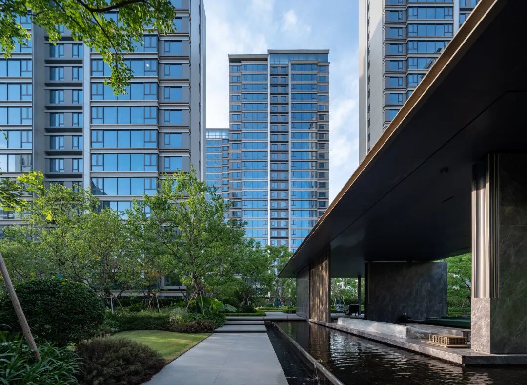 环“境”,小区临水区域没有设置围墙,而是借助河道这一天然屏障,打造出自然无界的景观效果。打造六重景观场景,让业主从踏入小区的那一刻起,就仿佛走进了现代桃花源。