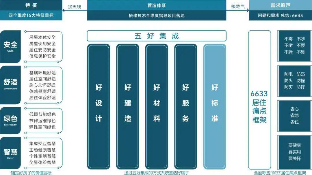 中海“好房子”坚持“问需于民”理念,基于中国建筑“好房子”营造体系方法论,系统回应“6633”居住痛点(六不、六防、三省、三要),以16大科技系统为底座,推出中海好房子Living OS系统,打造“高性能可感知、好服务可链接”的好房子产品。