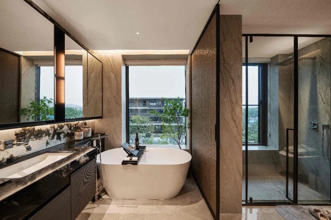 古驰黑奢石、雅柏灰石材、柏尼丝灰石材,春旭岩板、雪山银狐岩板、木饰板……不同材质、不同工艺美妙联动,每一处都是匠心的具象化。
