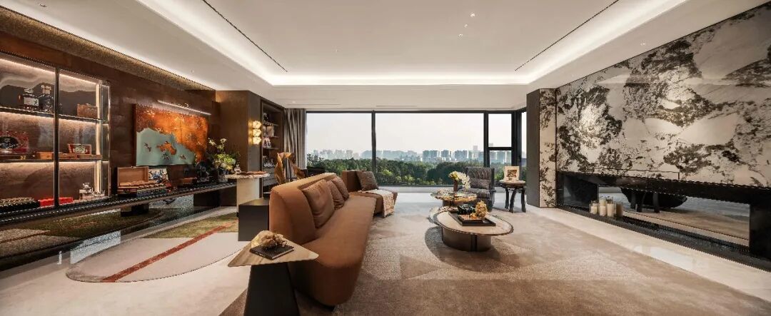 LDKB一体化横厅 7.9米巨幕阳台,尺度感惊人,室内外空间连为一体,模糊了建筑与自然的边界。