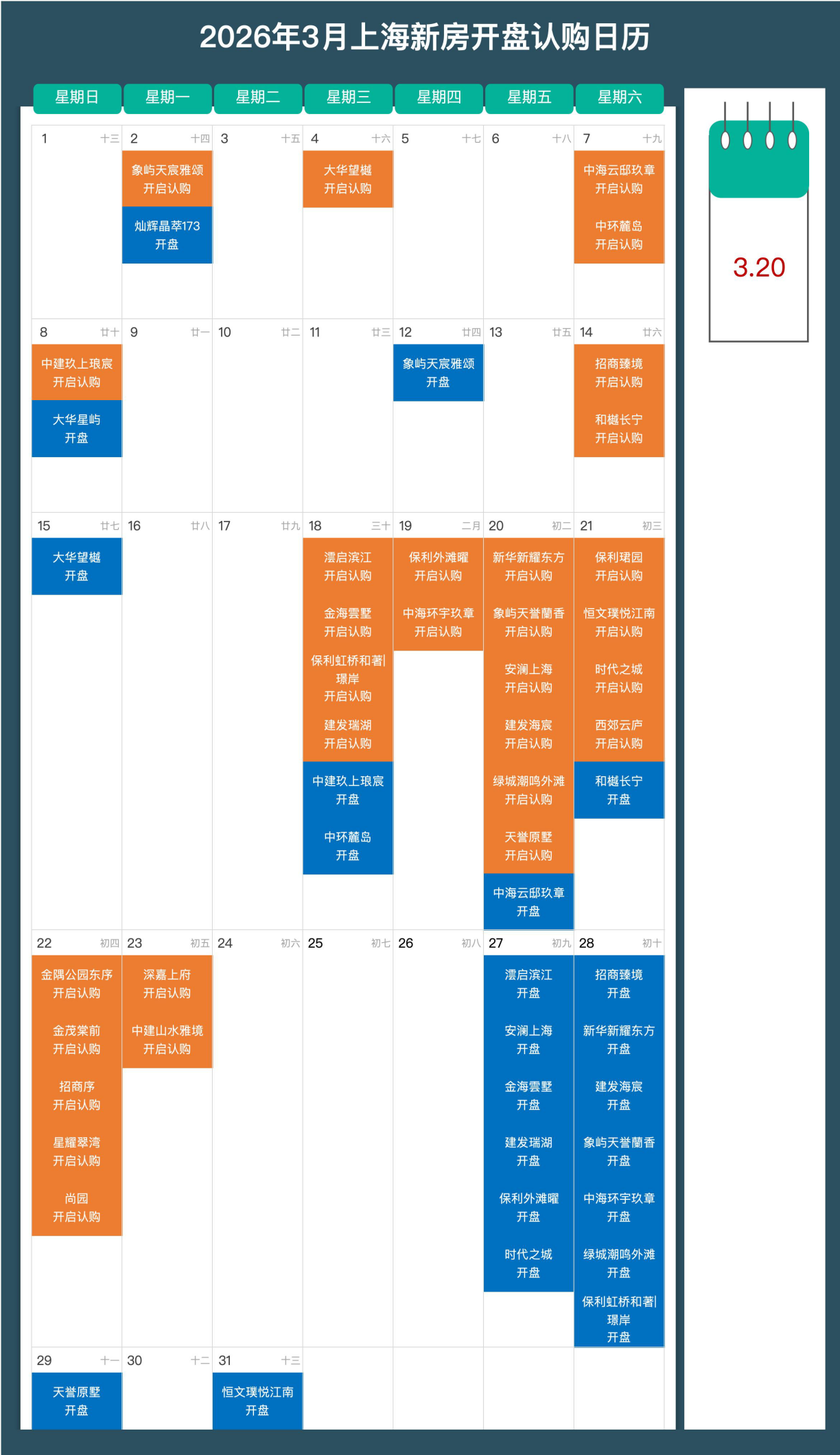 除上述两大项目外,3月20日还有4个项目开启认购: