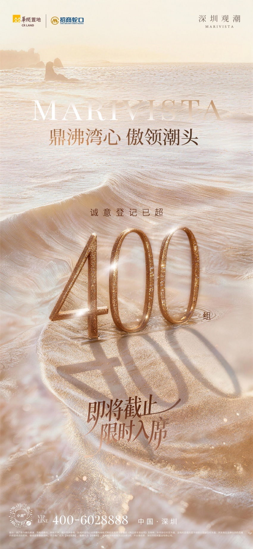 华润置地携手招商蛇口开发的湾区封面作品#深圳观潮持续引爆市场,深圳观潮诚意登记已突破400批,远超首推222套房源。项目亮相一个半月,到访量已突破2500批,以持续攀升的典藏热度,印证深圳塔尖资产的恒定引力。