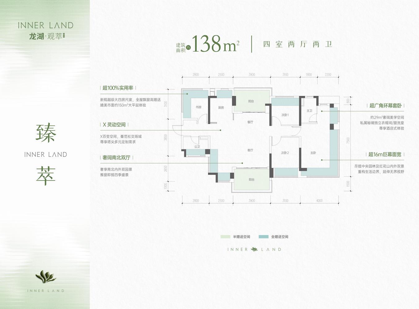 建面约138㎡四+X房,在新国标下,房子使用率、空间感和舒适度得到大跨度提升。