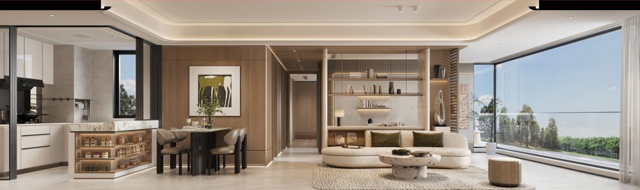 南北双厅,尽揽中央园林与红花山内外双景,搭配 X 百变灵动空间适配家庭全周期。加上约 47㎡LDKGX宴会级无界方厅,尽显奢华,可同时容纳超8人聚会,能轻松胜任家族聚会、商务洽谈和私人沙龙等场景。