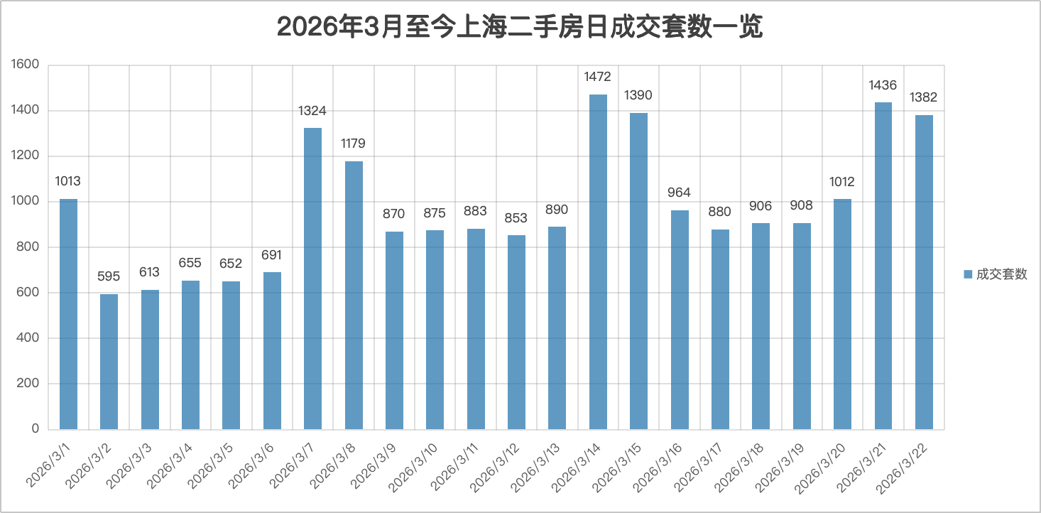 截至3月22日,上海3月二手房累计成交已达21443套。按当前日均974套的节奏,叠加月末翘尾效应,全月成交量突破3万套的预期正逐步增强。