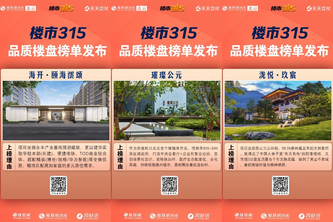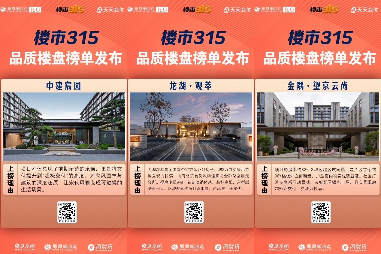 正是基于对楼市这些高频痛点的深度洞察与梳理,本次315专题以实景兑现、产品品质、服务体验、合规保障、口碑认可为五大核心维度,经资料审核、业主反馈调研、行业标准对标,最终评选出泷悦·玖宸、北京城建・天坛府、龙湖·观萃等十大北京品质楼盘。从核心亮点来看,这些标杆项目各有特色、各擅其长,集中展现了北京好房的优质基因与品质标杆力: