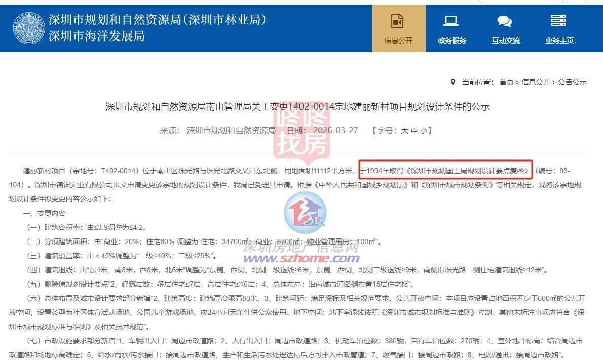 近日,南山T402-0014宗地建丽新村项目变更规划设计条件对外公示。