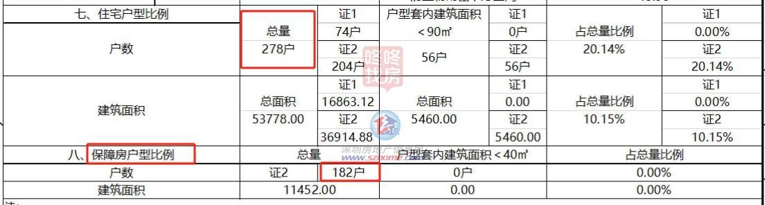 项目住宅总户数460户,其中,普通住宅共278户(普通住宅套内面积小于90㎡的只有56户),保障房182户。