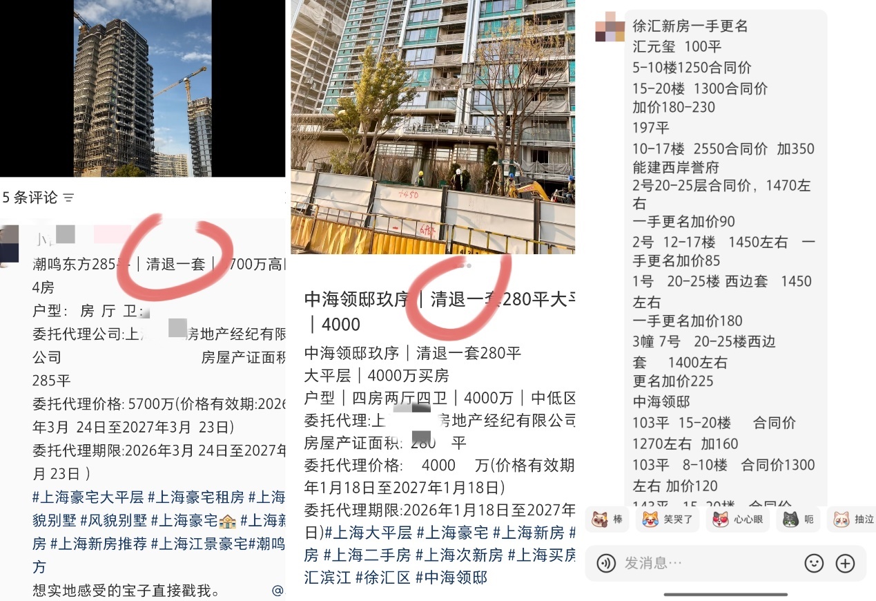 在社交媒体上,你能刷到不少“开发商清退房”“一手直签”的房源信息。楼盘涉及中海领邸、中海顺昌/恒昌玖里、潮鸣东方、汇元玺等……无一例外,都是当年开盘时的网红盘。