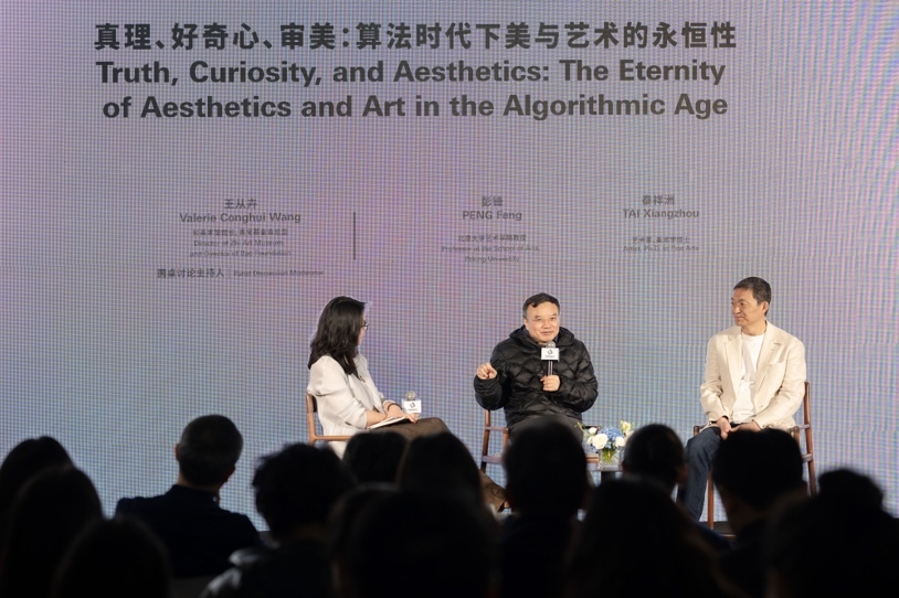 单元一圆桌论坛围绕“真理、好奇心、审美:算法时代下美与艺术的永恒性”展开,左起:王从卉、彭锋、泰祥洲,知美术馆第二届“开放的东方:亚洲艺术学术研讨会”现场