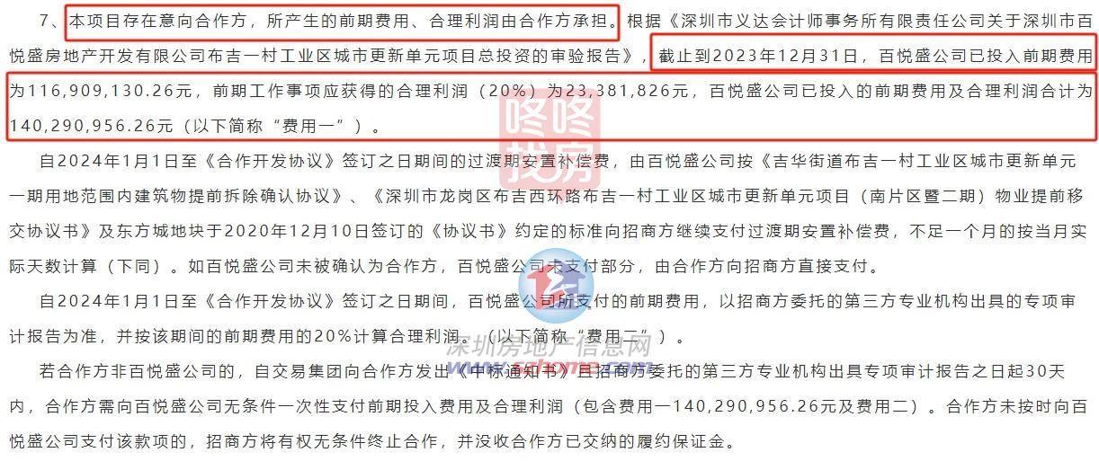 根据公告,若正式合作方非百合集团,需一次性返还百合集团前期投入费用及合理利润,包含费用一140,290,956.26元及费用二。仅此一项,就超过1.4亿元。