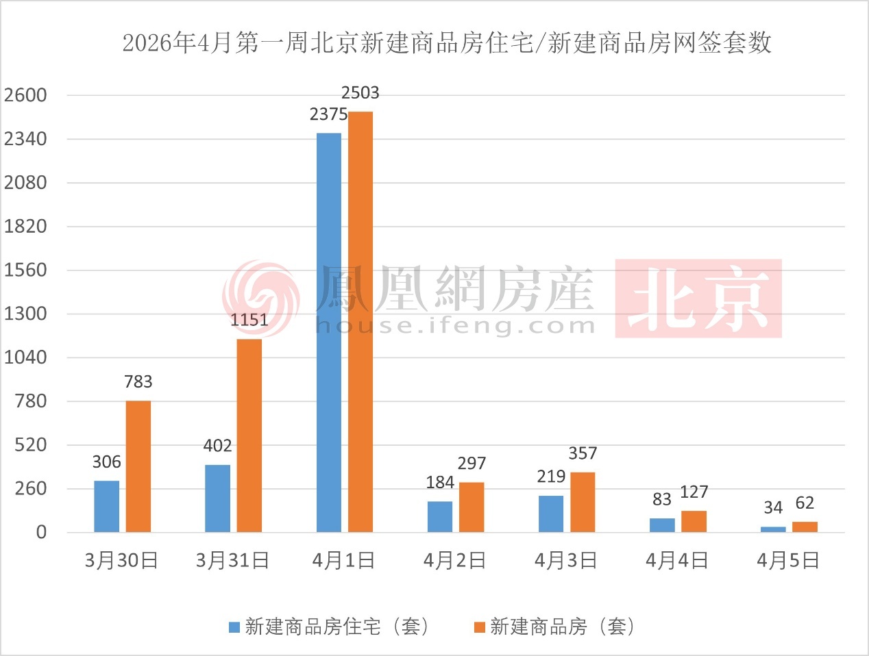 2026年4月第一周北京新建商品房住宅/新建商品房网签套数