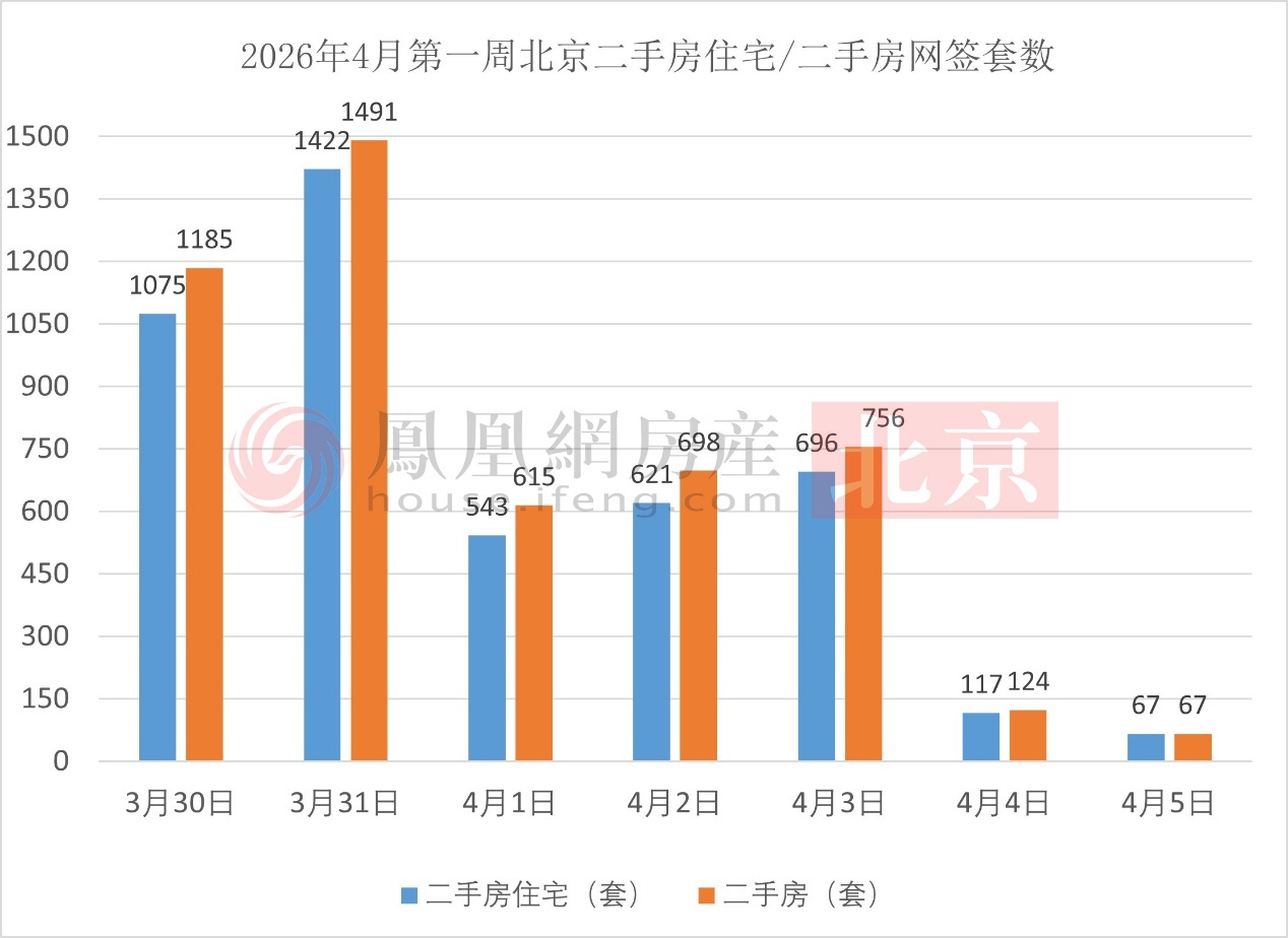 2026年4月第一周北京二手房住宅/二手房网签套数