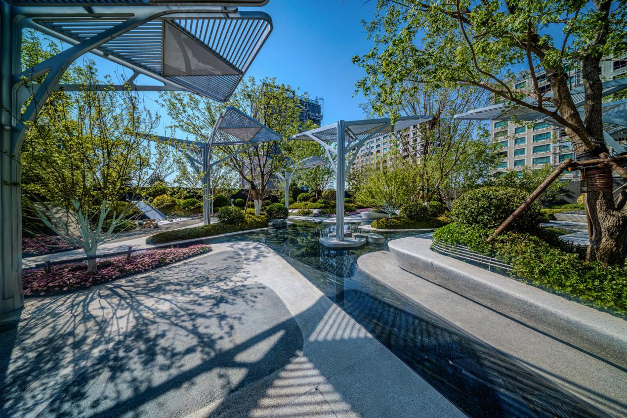 依托TOD开发带来的天然地形高差,打造街区式空中公园会所