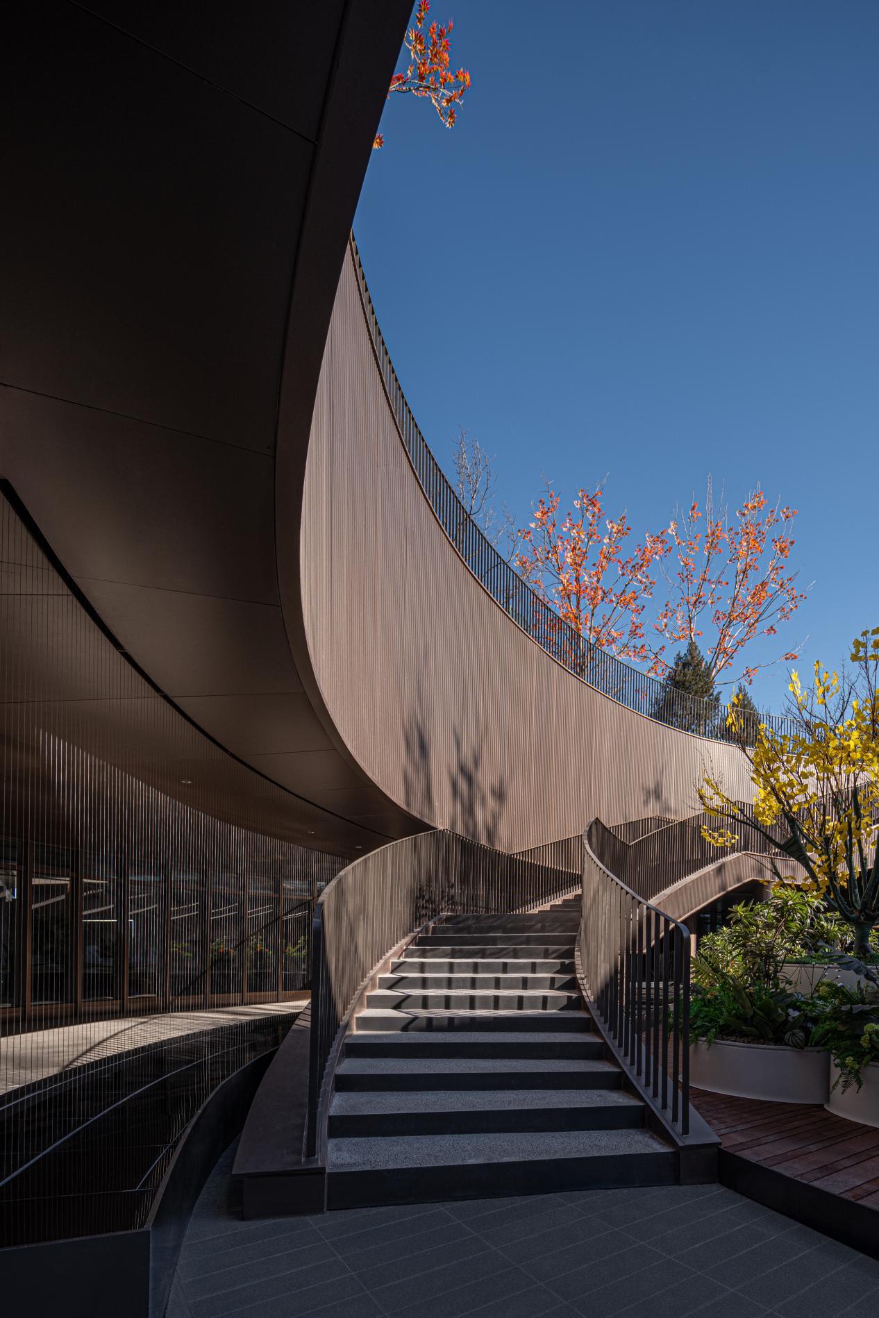 地上、空中、公园,三大特征直接将森与天成星空商业会所独特性拉满。从体验上,既规避了地下会所通风采光的问题,同时当从社区内部望向北侧,视线可以越过层层而下的草阶剧场,直接延伸至南苑森林湿地公园的林冠线。