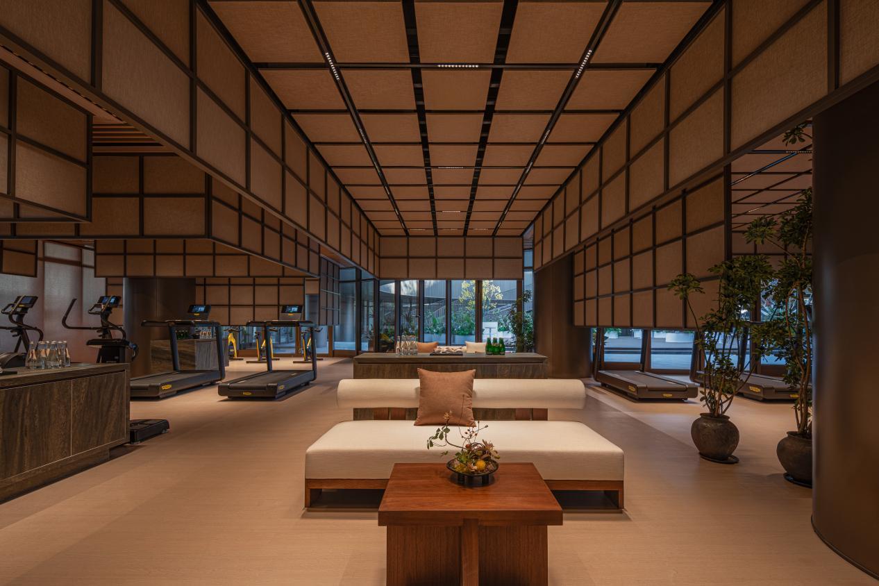 约600平方米的健身空间,不仅配备了全系专业器材,更涵盖了社交属性的洗漱区、独立的瑜伽室和普拉提空间。最令人心动的是它的南向视野,在大面积玻璃窗设计下,光线、景观投入室内——当你挥汗如雨时,抬眼便是葱茏绿意,运动不再是封闭空间的自我消耗,而成为与自然对话的愉悦体验。
