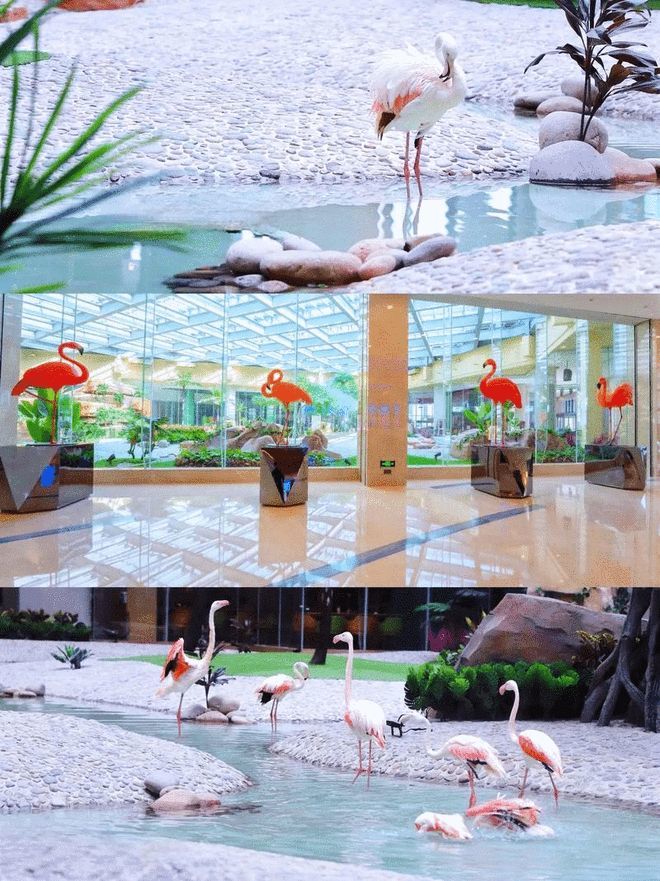 •火烈鸟互动区:近距离观赏珍稀火烈鸟,边喂食边享用美食,开启沉浸式体验