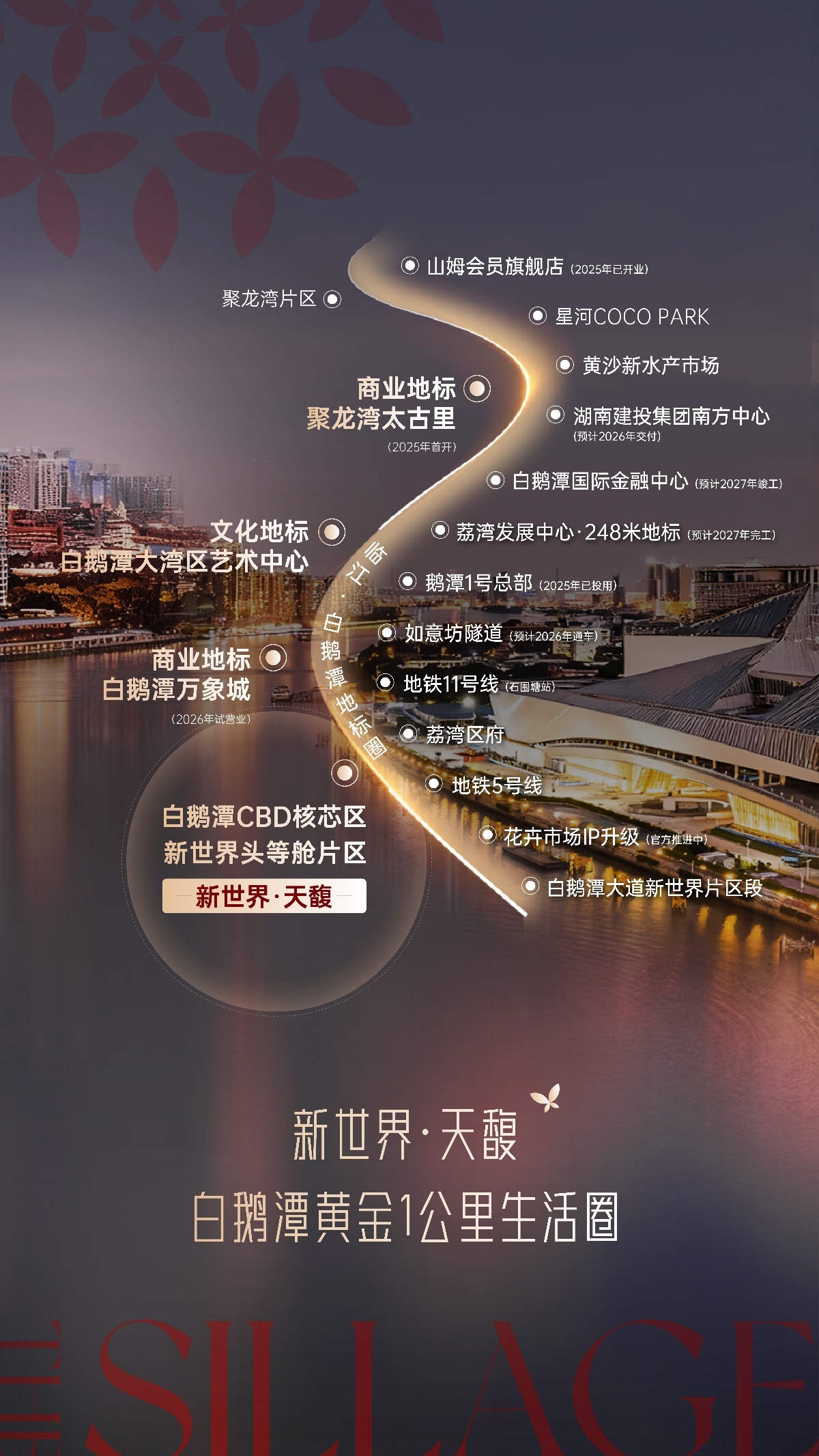 这份深耕的底气,让新世界·天馥自带高光buff。作为白鹅潭黄金一公里生活圈的核心成员,以人居封面姿态,与文化地标大湾区艺术中心、商业地标太古里&万象城等城市地标并肩矗立,共同勾勒出白鹅潭的价值天际线。当其他楼盘还在蹭片区红利时,天馥早已成为红利本身——与片区共生共荣,与地标同频共振,让每一位业主都能无缝共享白鹅潭CBD发展的每一份价值溢价,这就是品牌深耕的底气,也是“家住天馥”最坚实的价值底色。