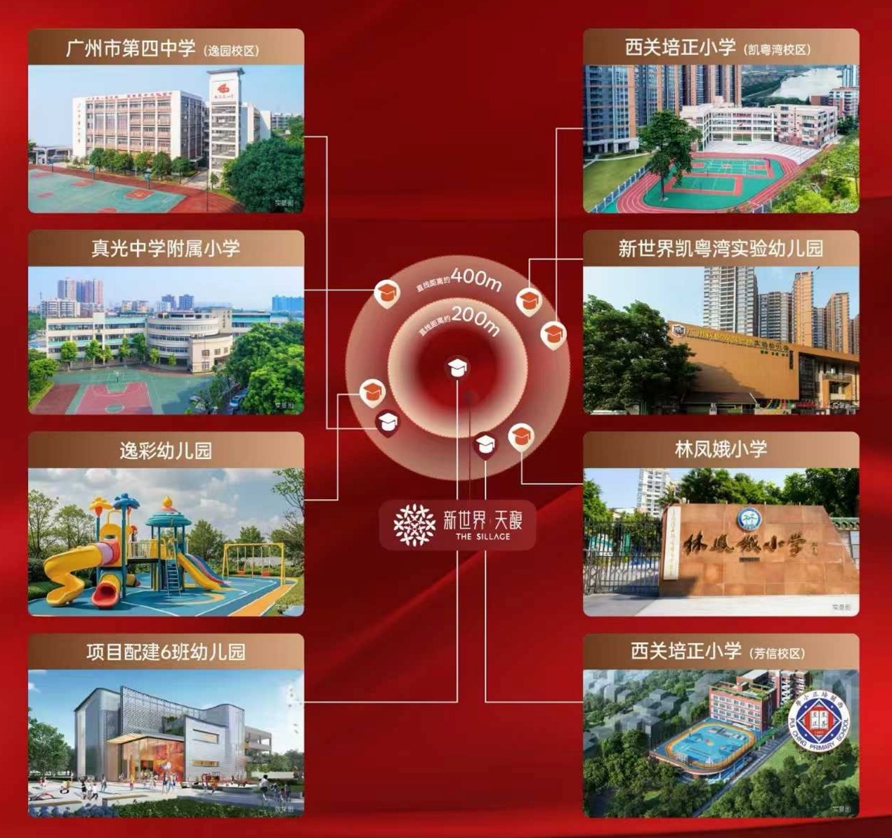 家门口就有6班幼儿园,孩子从小就能在温馨的氛围中开启启蒙教育;约200米直达两所西关培正小学,作为广州老牌名校,培正小学的教学质量有口皆碑,深厚的文化底蕴和优秀的师资团队,为孩子的小学阶段打下坚实基础;除此之外,项目还毗邻广州四中、真光中学附属小学等一众名校,优质教育资源环伺,让孩子在书香浸润中成长。