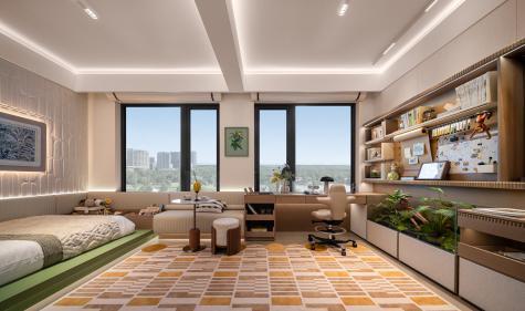 全屋收纳体系从交付到预留皆有精细考量,“逗号空间”、玄关柜、餐边柜、卧室预留储物空间……每一寸空间都被温柔计算。北向次卧约5.4m大面宽,可定制为儿童房、书房、电竞房……一间X空间,承载生活的无限想象。LDK+BG通透无界,约7.5m双联阳台与露台自然融合,长窗框景,将流动的绿洲引入室内。厨房连接设备平台,可改造为有机菜园或食材仓储——在水培架上种几茬香草,烹饪时随手摘下,三餐四季皆有暖意。