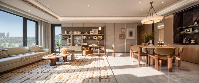 8#楼同样踞守社区南北景观中轴,且位置更靠近园林的纵深腹地。推开窗,眼前不是层层展开的低密园林景色,特有的金陵四季风光在眼底铺陈。清晨,阳光穿过树梢洒进客厅;午后,在阳台上泡一壶茶,看楼下孩子们在林下自由奔跑;傍晚,与邻居在花园小径上散步闲聊,花园洋房社区独有的安宁与温情,在这里成为日常。