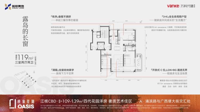 【产品】项目规划9栋6-8层洋房、3栋小高层,涵盖109-139㎡进阶改善户型。由江北新区直管国企新居置地与万科代建共同打造,品质与兑现力皆有保障。