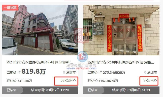 宝安一栋建筑面积仅300多平米的私宅,起拍价251万元,吸引了35人竞拍,经过277轮加价,最终以819.8万元成交,溢价率高达220%。