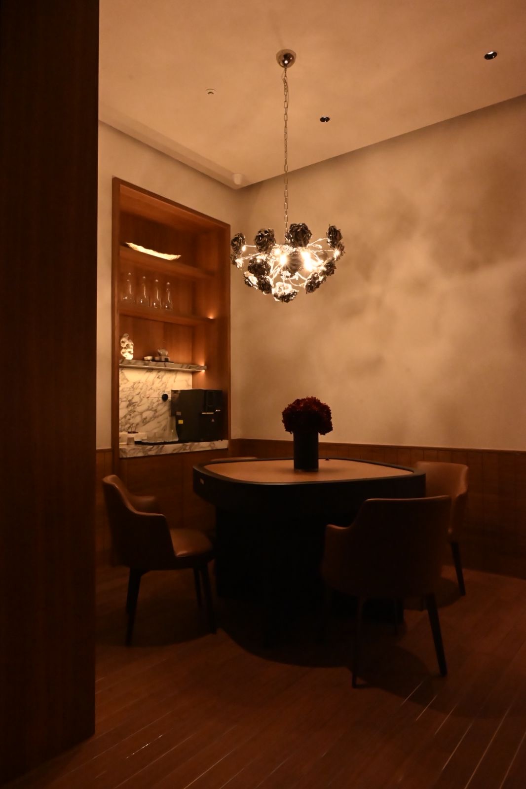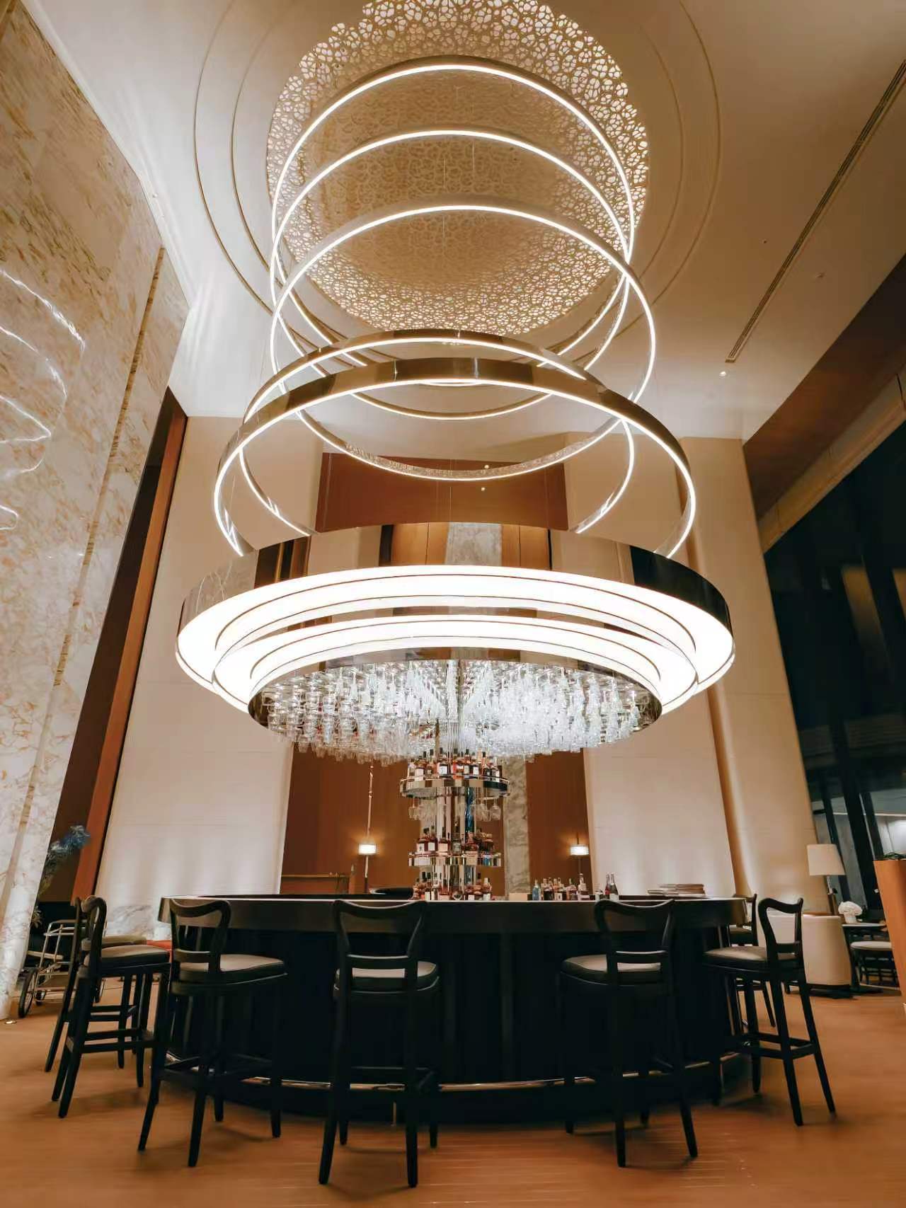 “游艇行政吧台“,以利落金属线条勾勒游艇甲板般的极简秩序,将珊瑚艺术纹饰融入穹顶与立柱肌理,让滨海栖居的悠然松弛,与高阶社交的精致格调浑然交融。