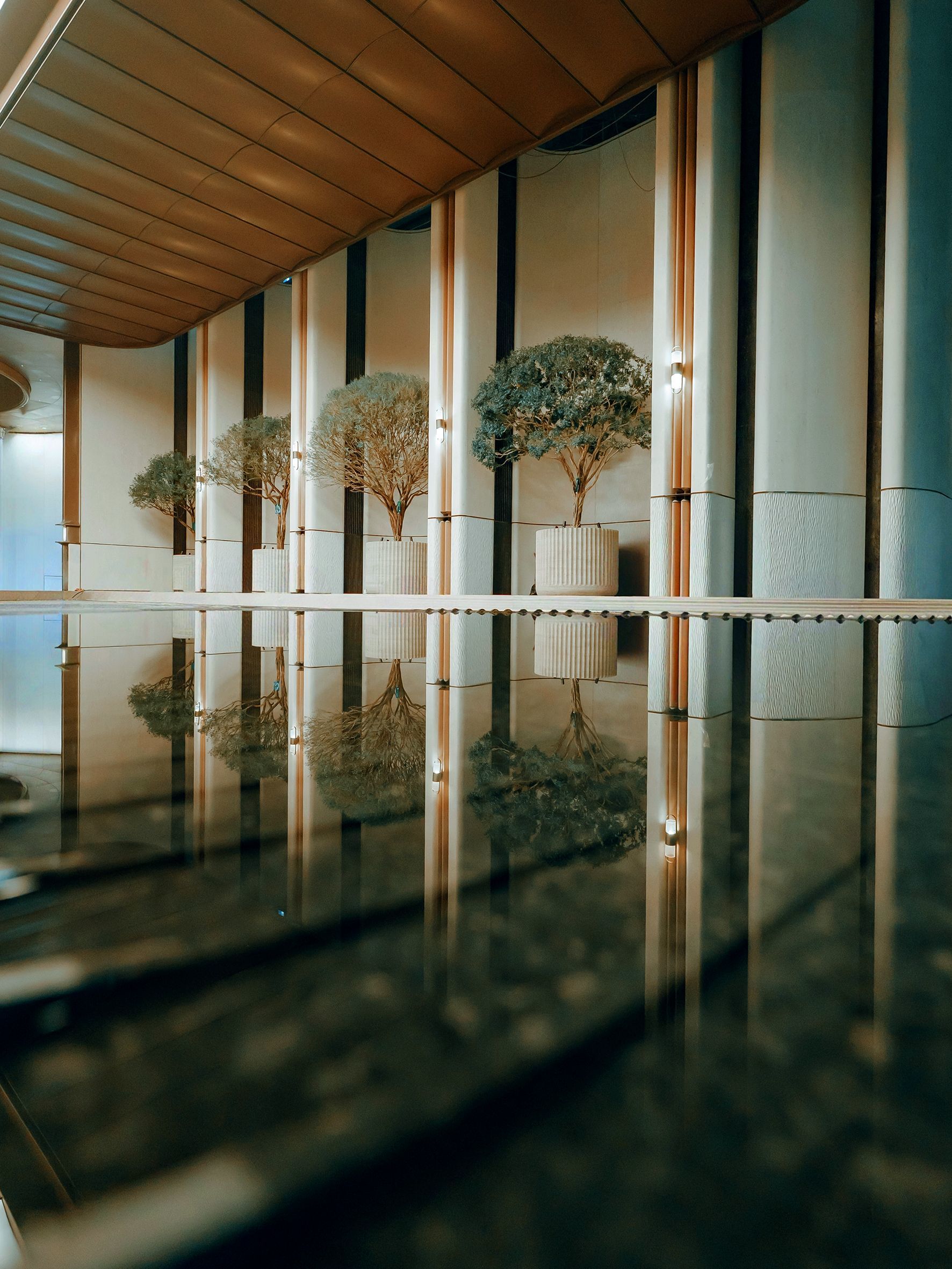 美国艺术家Lachlan Turczan中国首秀作品OCULUS「海洋之瞳」,以水、光与声音为媒介,借数字编程汇聚海洋形态,波纹、微风、音乐与光影,共同生成一件"会呼吸"的作品。日间波光层叠,夜晚光自水下升起,与穹顶形成天地对望,让归家从一次抵达,皆为与海、与时间、与自我的深度重逢。