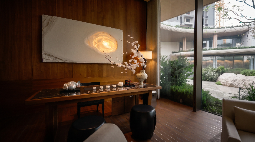 承载流光雅境,兼具私宴格调与高阶社交场域,家庭欢聚、圈层盛会皆可从容盛放、自在尽兴;静谧一隅藏纳悠然意趣,于自然呼吸间消解身心疲惫,回归松弛平衡的栖居本真。
