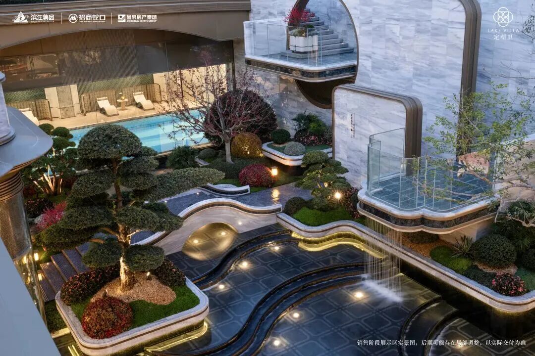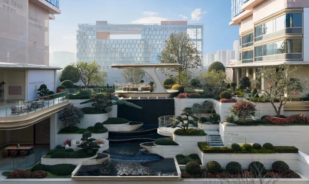 而景观设计则由蓝颂GTS宋淑华执笔,以"外览大山水,内藏小山水"为设计理念,设有流水、山石、亭台。