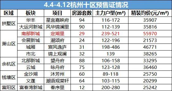 据凤凰网房产统计,本周(4.4-4.12)杭州十区共有11个项目取得预售证,新增房源599套,相比上周增加了231套,其中定湖里成为率先入市的豪宅项目。
