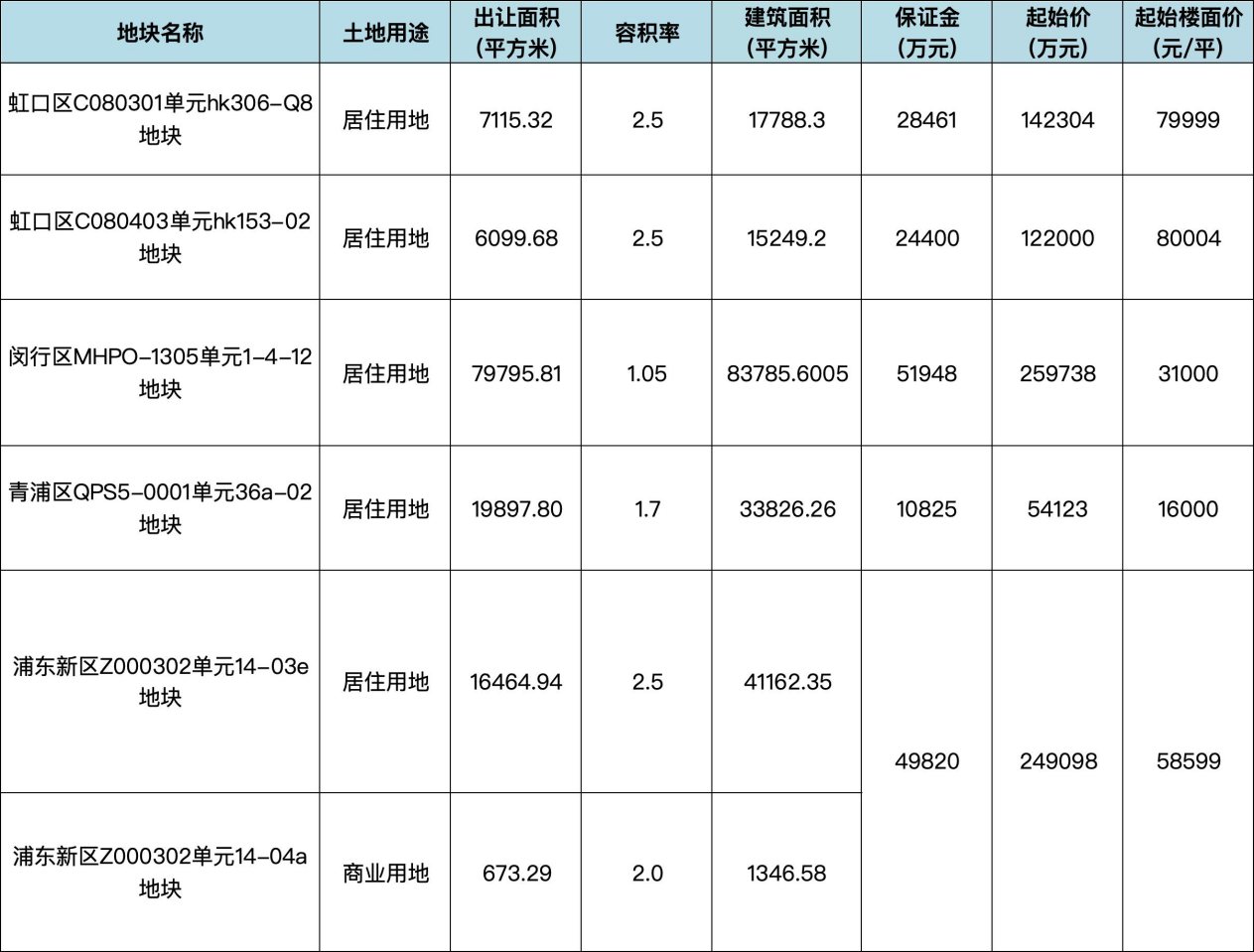 本批次共推出5幅涉宅地块,分布于浦东、虹口、闵行、青浦四区,总出让面积约10.12万平方米,起始总价合计约82.73亿元。现场交易会定于5月28日举行。