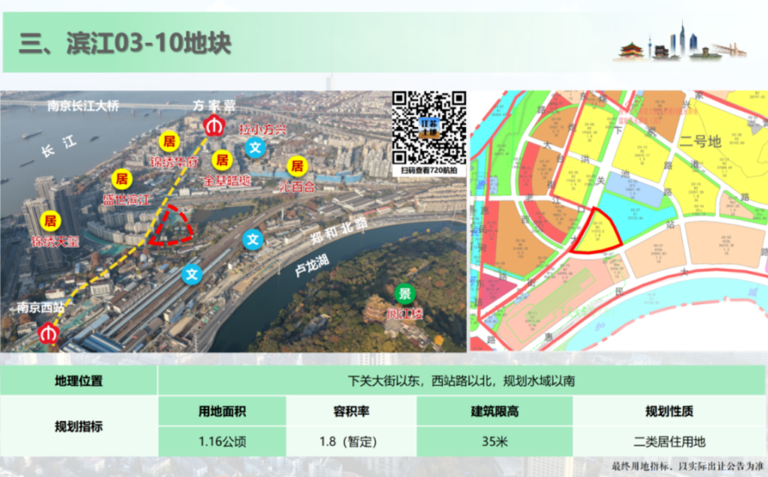 该地块计划于2026年四季度推出,位于地铁5号线的南京西站与方家营站之间,西临长江、东望阅江楼,容积率1.8左右。