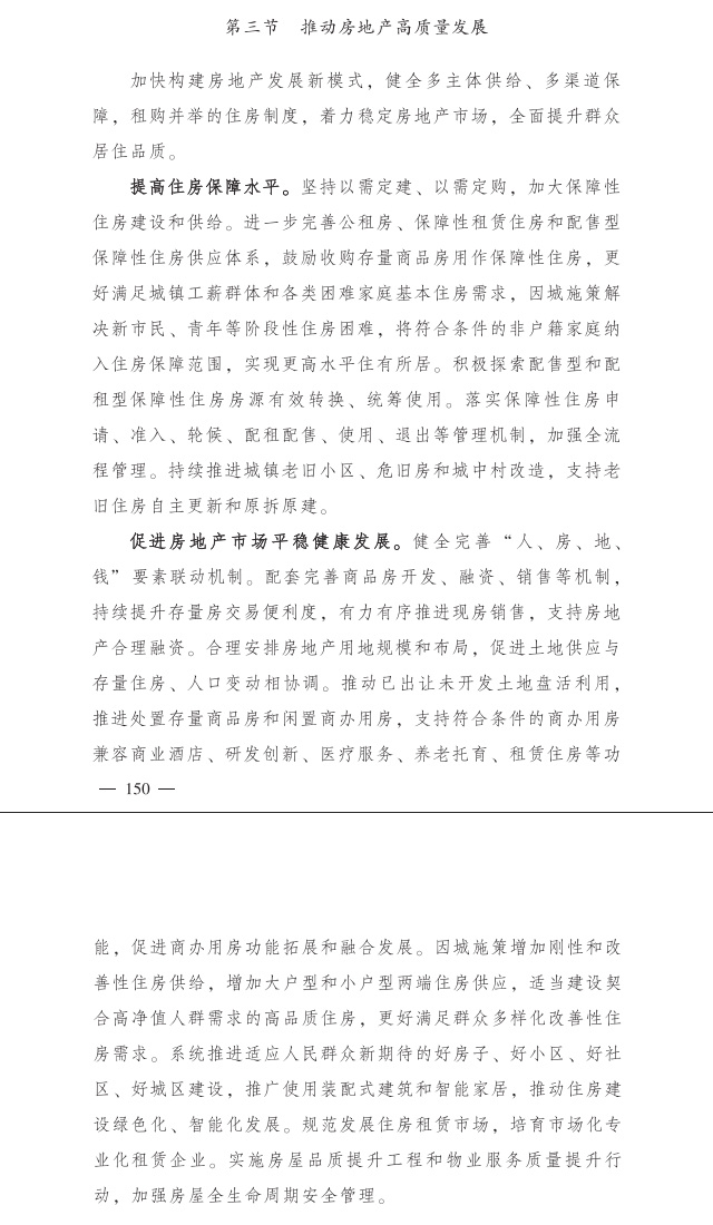 4月28日,广东省人民政府发布《广东省国民经济和社会发展第十五个五年规划纲要》的通知。其中专门设立“推动房地产高质量发展”章节,部署未来五年房地产发展路径。纲要提出,加快构建房地产发展新模式,健全“多主体供给、多渠道保障、租购并举”的住房制度,着力稳定市场、提升居住品质。
